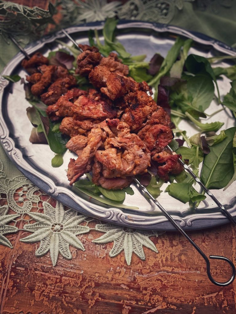 Grillen: Bei glühender Holzkohle (oder einer sehr heißen Grillplatte) 3–4 Minuten pro Seite garen. Nicht zu lange, das Fleisch soll innen saftig und außen knusprig bleiben.