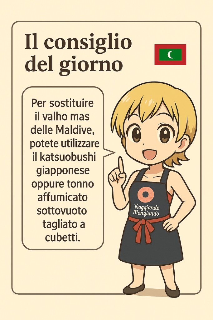 • Es ist ein traditionelles Produkt der Malediven, ähnlich dem japanischen „Katsuobushi“ oder dem in Sri Lanka verwendeten „Maldive Fish“.