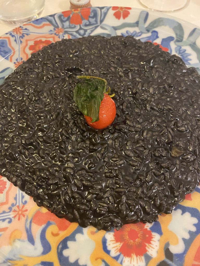 Im Restaurant „La Patatina“ in Venedig, in der ersten Nacht unserer venezianischen Reise im März 2019, konnten wir nicht anders als mit einem Risotto zu beginnen (die Veneter sind bekanntlich sehr geschickt im Zubereiten von Risottos!) und die Wahl fiel auf einen Risotto mit Sepia-Tinte, streng mit Fischbrühe und nicht mit Butter angerührt!