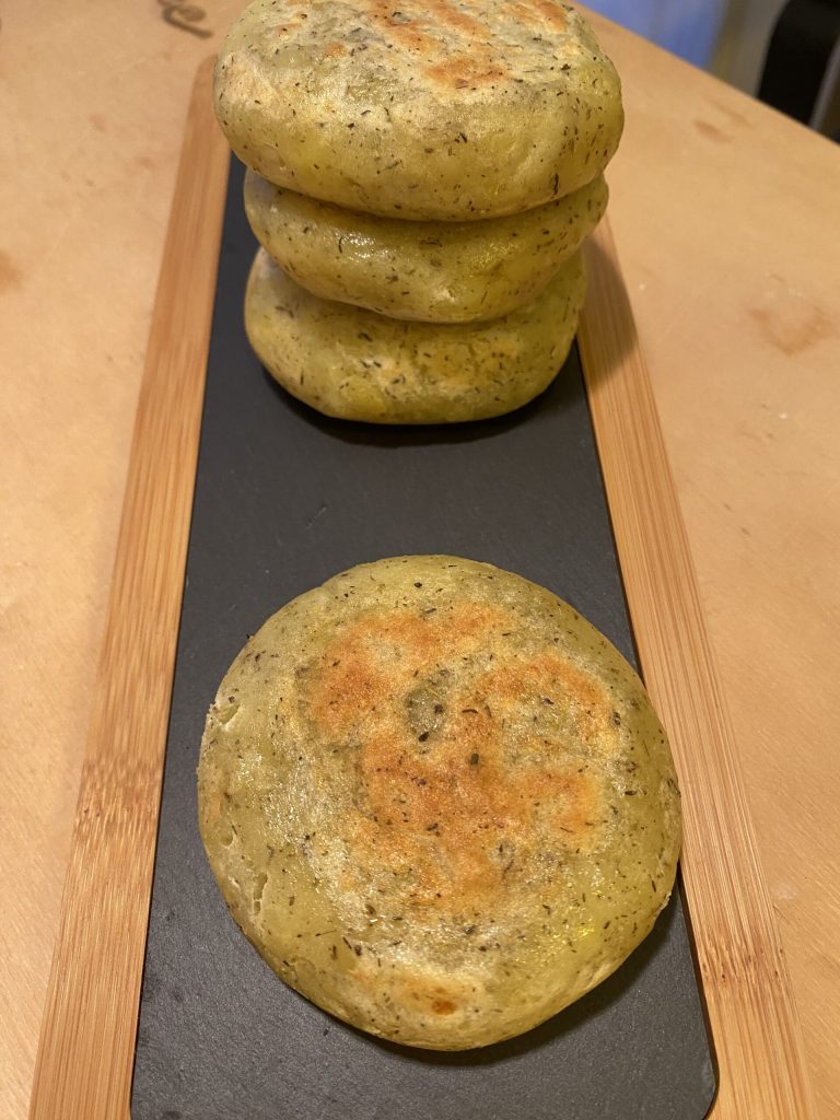 The cheesy potato burger is a main dish that, paired with a nice salad, becomes a well-balanced meal.