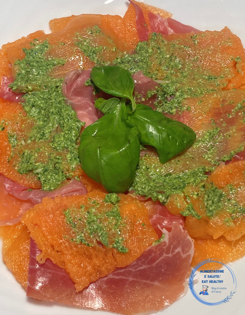 I completed the dish with a few teaspoons of pesto that, besides adding a touch of color, gives it a bold flavor, and for me, who doesn’t particularly love this fruit, it’s certainly the best way to eat it.
