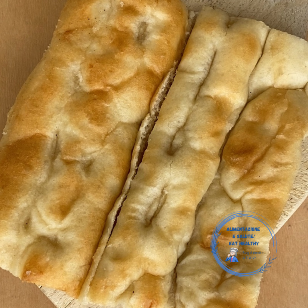 Anyway, once the focaccia is prepared or bought, you simply need to cut it into strips.