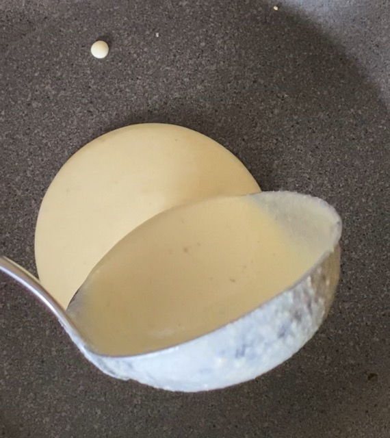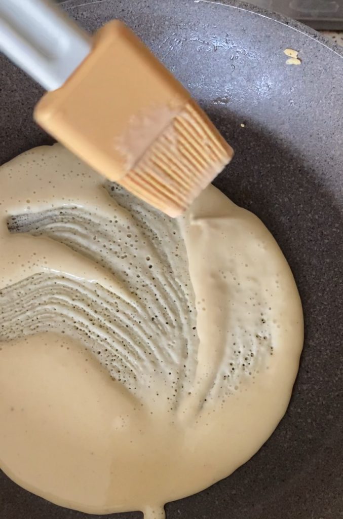 • Heat a pan well with a little oil and pour the batter.