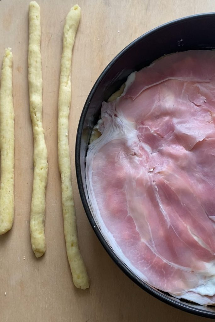Use a third of the dough to make the strips that will be placed over the filling.