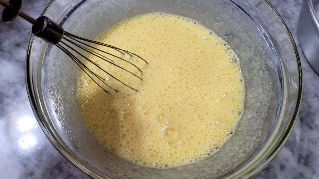 • In another bowl, beat the eggs with the sugar until you get a light and fluffy mixture