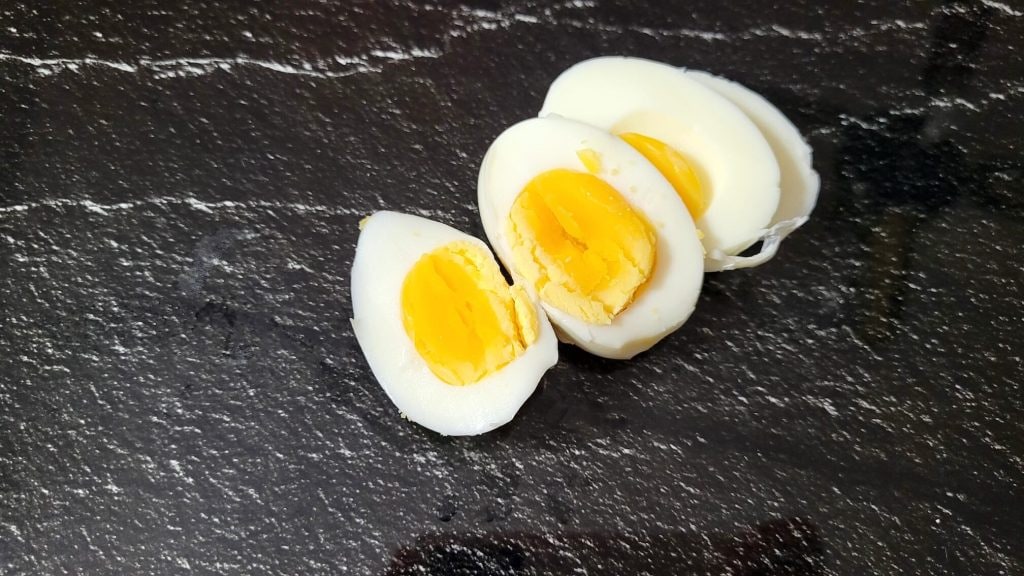 The alternative is to hard-boil them the classic way: immerse the eggs in cold water in a saucepan and bring them slowly to a boil. Cook for 8 minutes from boiling. Once ready, run them under cold water and remove the shell