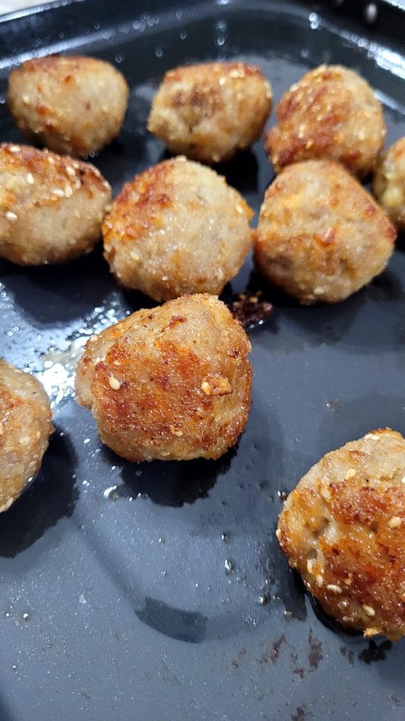 The meatballs can be stored in the refrigerator for 2/3 days, sealed in a container or a dish covered with plastic wrap. You can reheat them in the air fryer, and in just a few minutes, they will be crispy like freshly made.