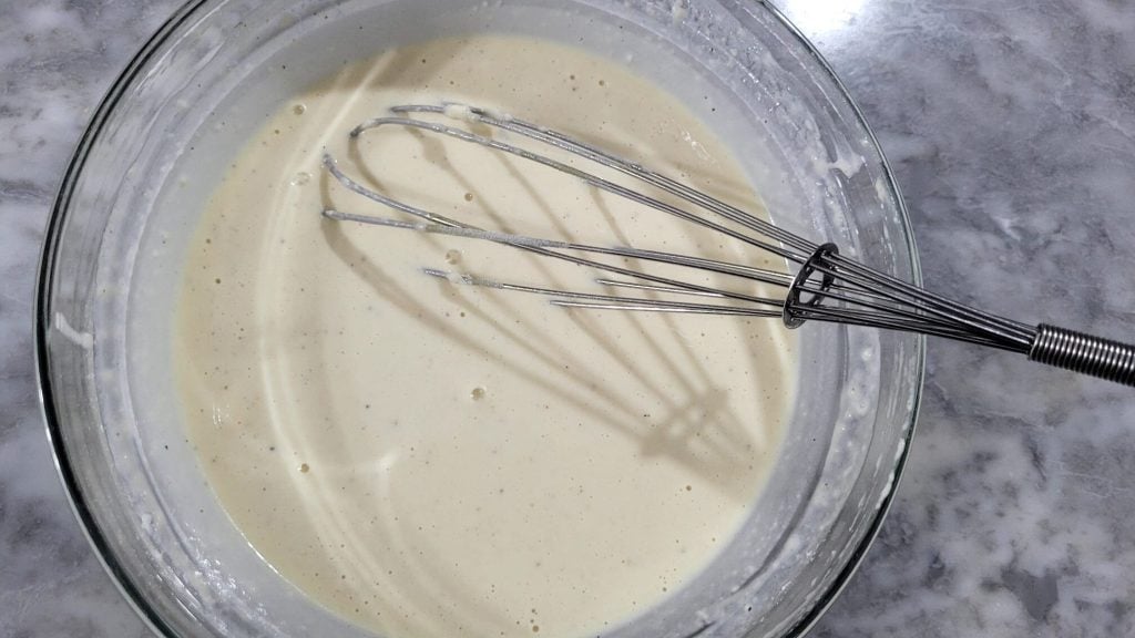 After washing and peeling the potatoes, grate them with the large-hole grater and add them to the batter. Mix well