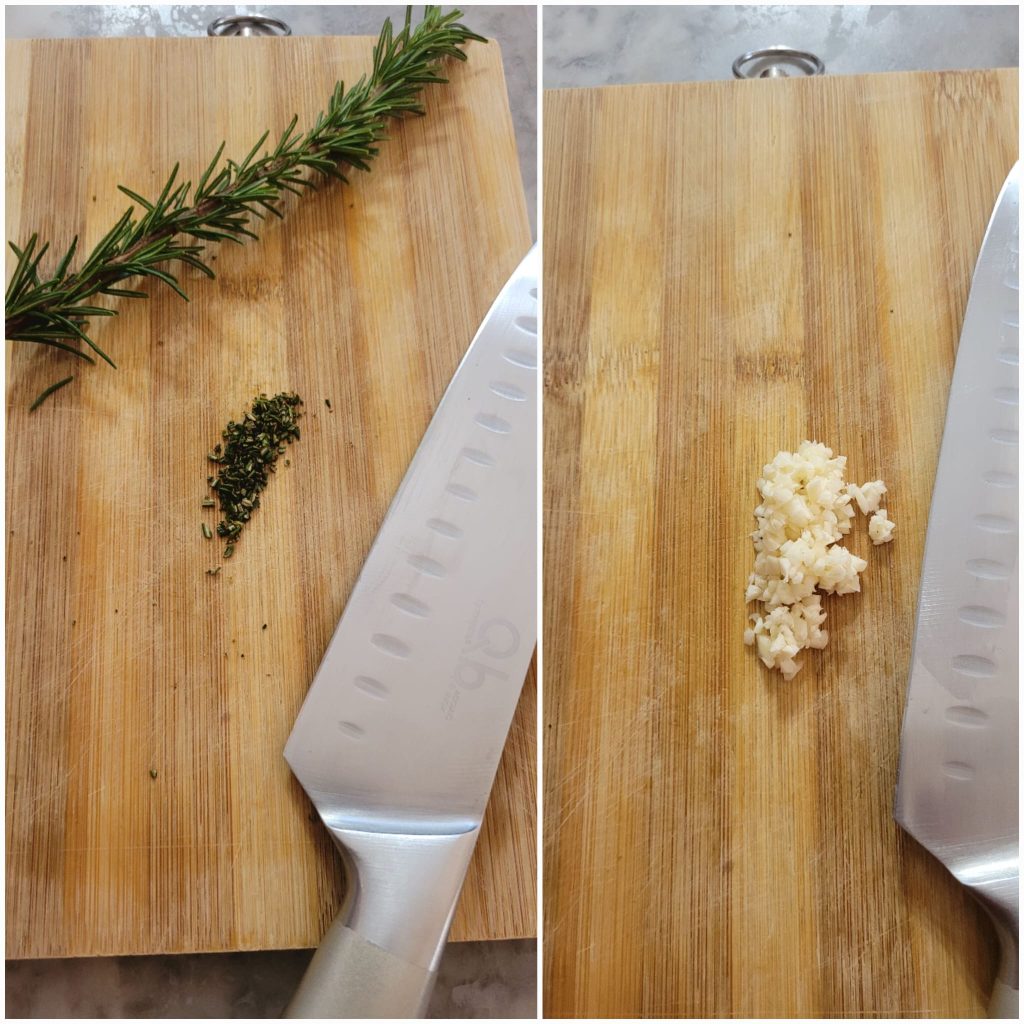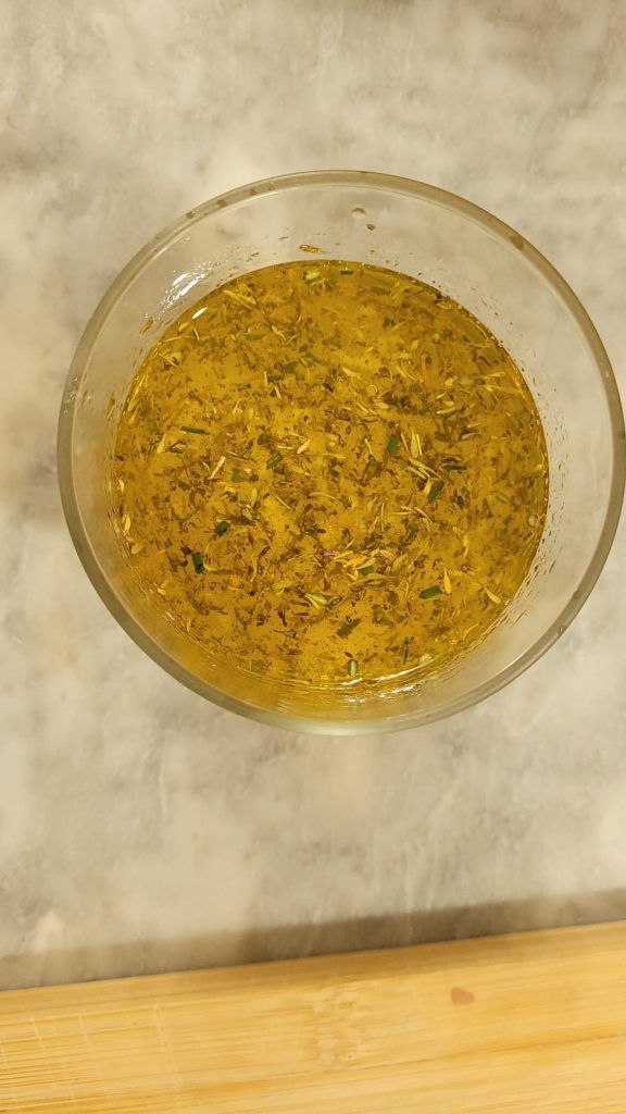 For this Roast Chicken in the Air Fryer, I prepare two identical marinades: one for resting in the fridge for about 6 hours and one for cooking, essential to avoid cross-contamination. The flavors? Oil, wine, vinegar, salt, pepper, rosemary, garlic, lemon, and bay leaf, but you can customize them based on your family’s taste.