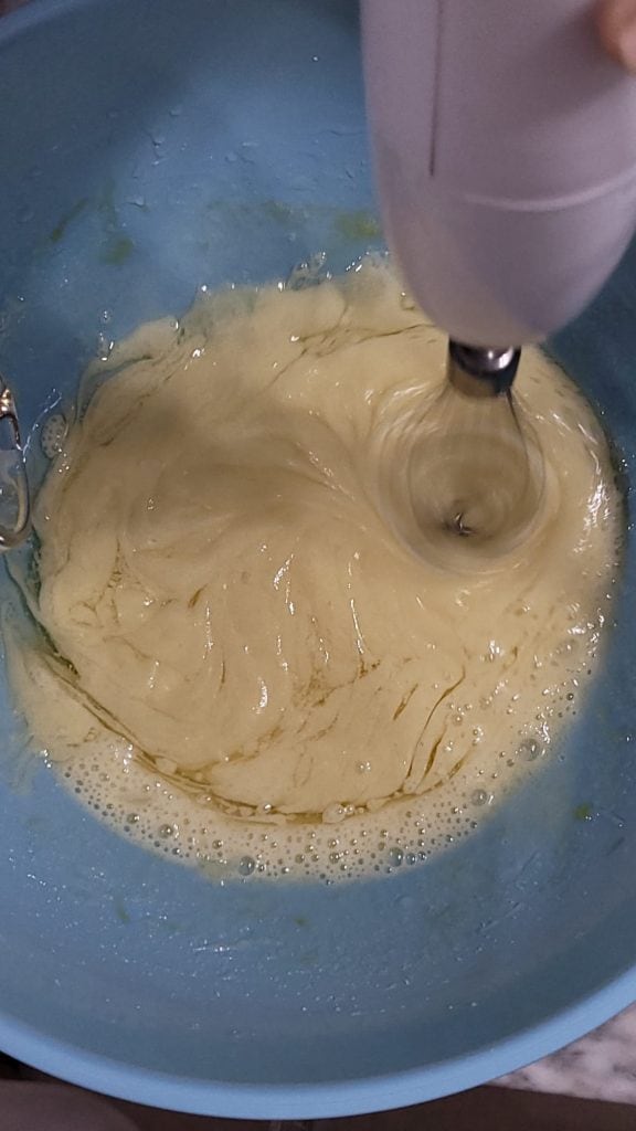 Now add the vanillin, the all-purpose flour, and the sifted baking powder, continuing to mix until you get a smooth and homogeneous mixture