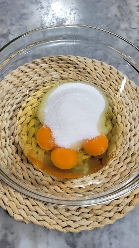 While the chocolate is cooling, take another bowl and, using an electric whisk, beat the eggs with the sugar until you obtain a light and frothy mixture
