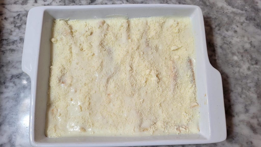 Now you can cover the cannelloni with béchamel and grated Parmesan