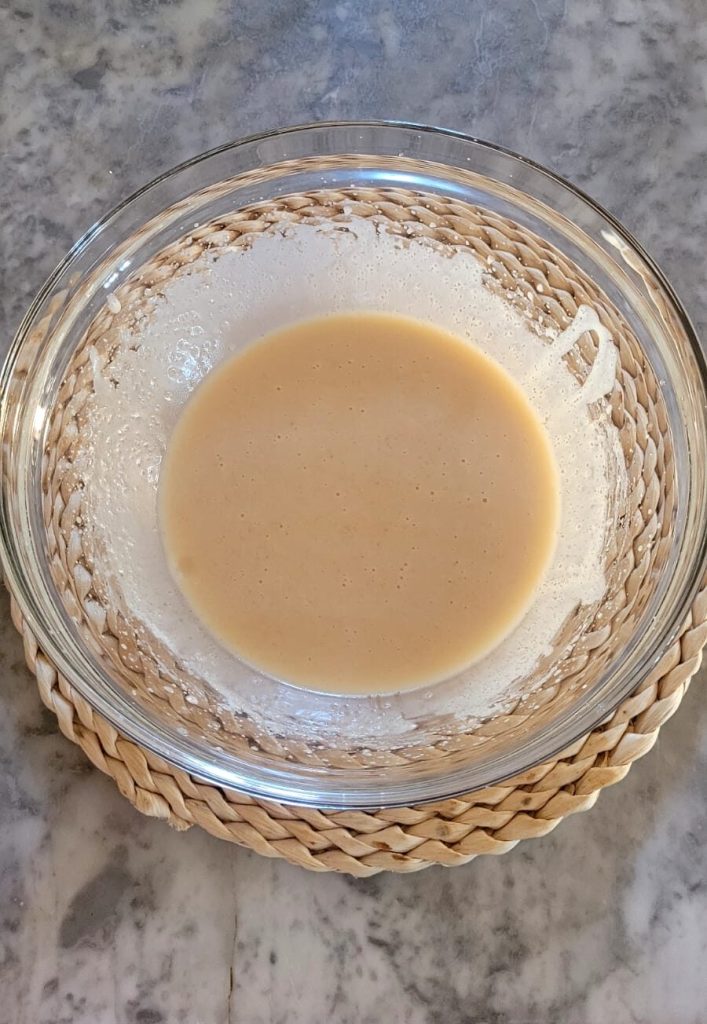• In another bowl, add the liquid ingredients (yogurt and oil) and the sugar.