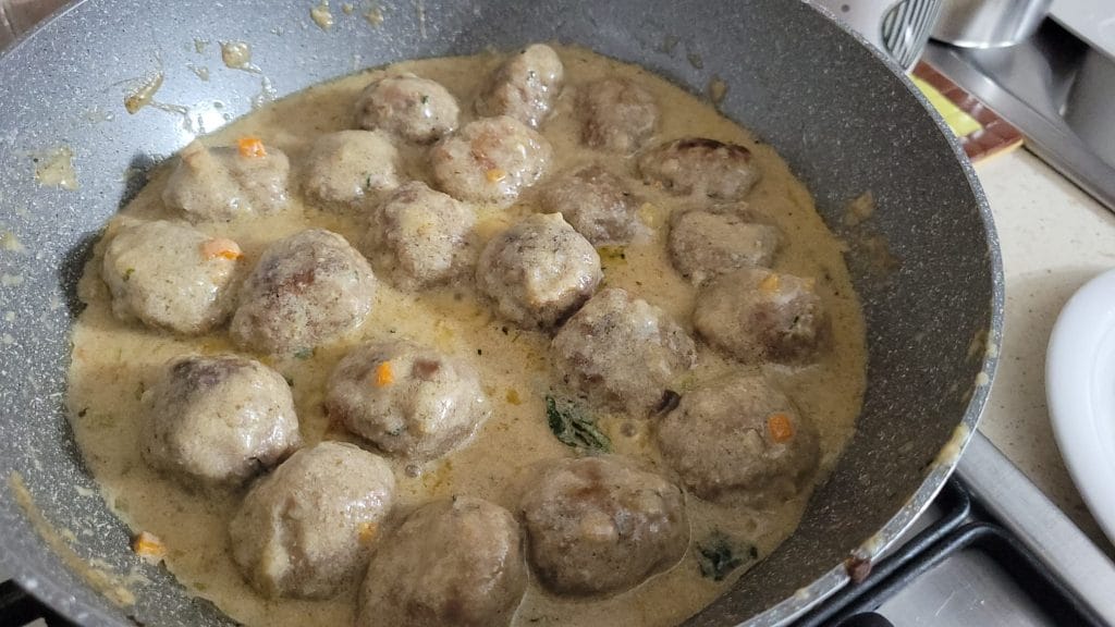 Once the milk has thickened, the meatballs are ready