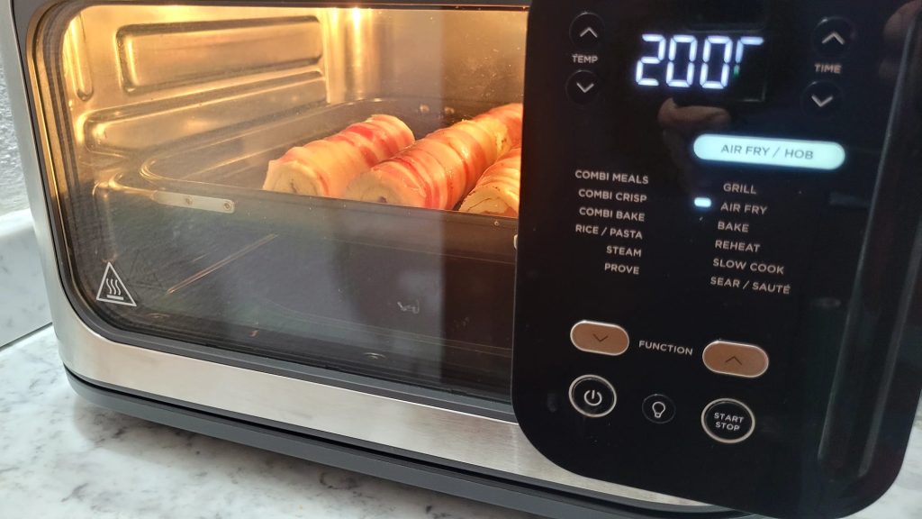 • Start cooking at 392°F for 8 minutes or until the bacon becomes crispy
