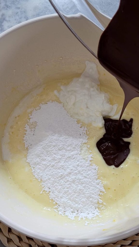 • While the chocolate cools, whisk the eggs with the sugar until you get a light and foamy mixture