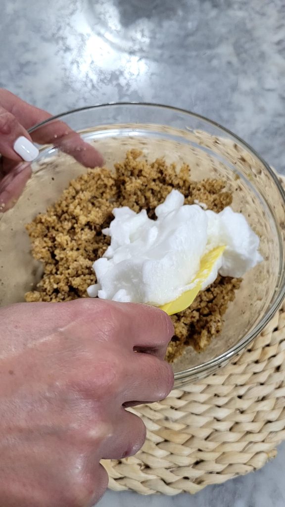 With a spatula, gradually fold in the egg whites, mixing from bottom to top, without deflating the mixture