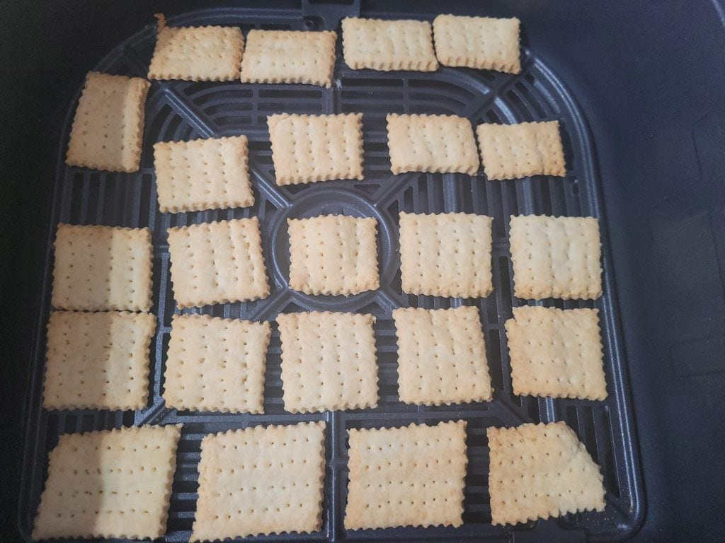 Transfer the crackers onto the air fryer rack and cook at 356°F for 10 minutes