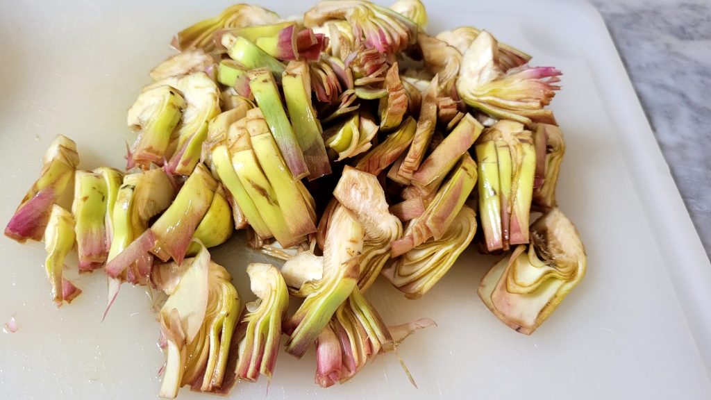 Remove the choke and as you prepare them, put them in a bowl with water and lemon to prevent them from turning black