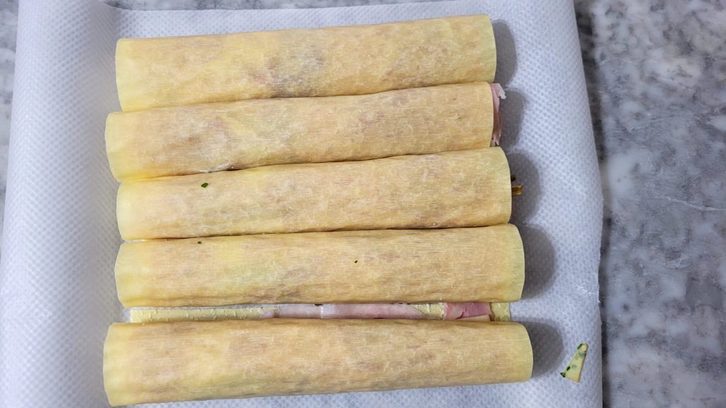 Roll the lasagna sheet from the long side and continue until all the sheets are finished
