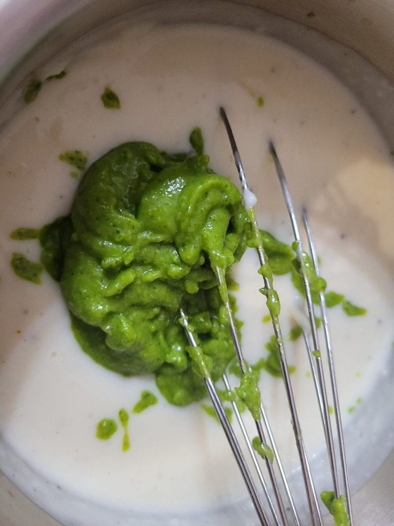 • Meanwhile, prepare the béchamel, the pesto, and mix them together