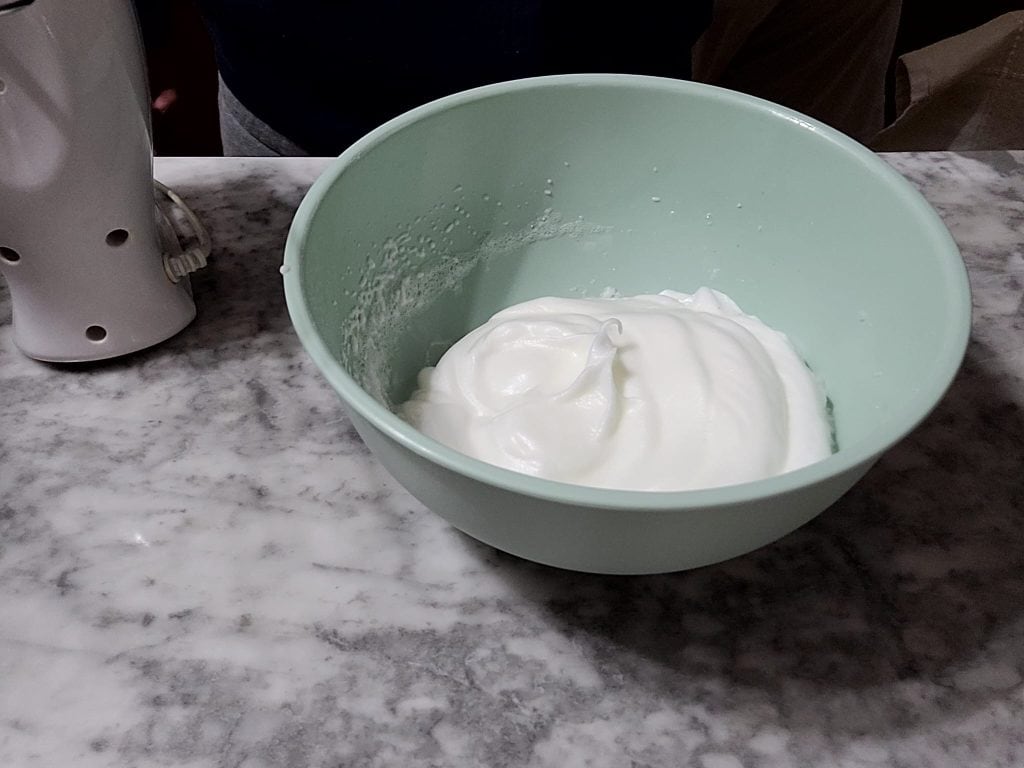 Now incorporate the beaten egg whites, a little at a time, folding gently