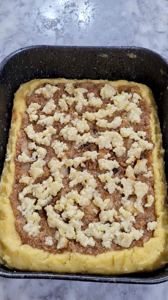 This dessert requires multiple preparations, so if you don’t have much time, you can organize it and make it in several stages and in advance, for example by starting with the shortcrust pastry the night before, letting it rest in the fridge overnight, and the next day dedicate yourself to the filling, the almond mixture, to be crumbled on the surface at the moment, and finally to the baking. If you have little time, postpone the preparation and choose a day when you are more free, desserts need fundamental steps for a perfect outcome. I don’t want to scare you, it’s not difficult, but the hurry could compromise the final result.