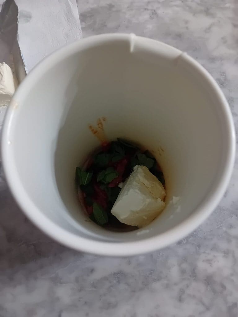 Once ready, transfer half of the tomatoes into a blender jug along with basil, salt, pepper, and robiola