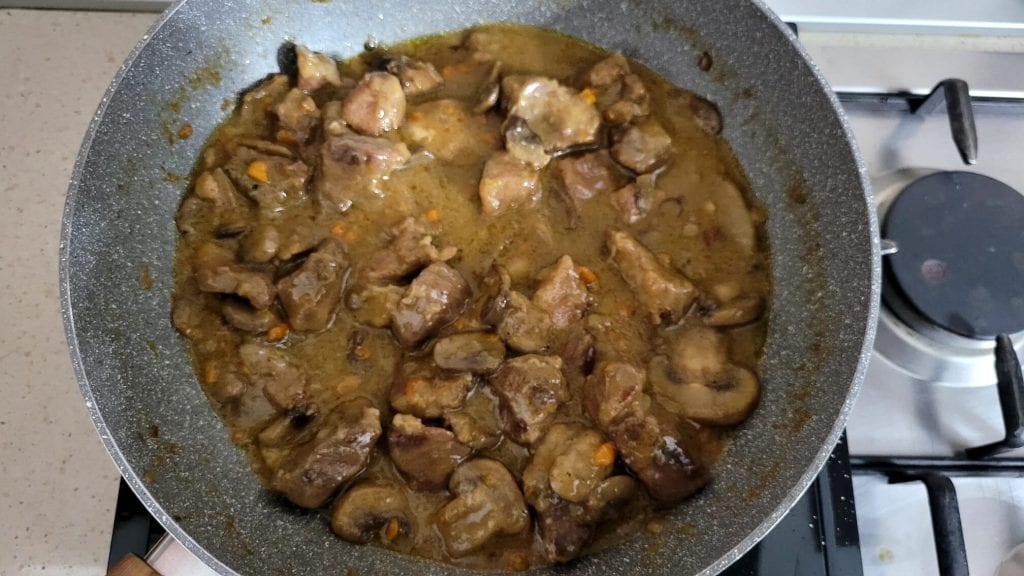 To get a perfect creaminess, just flour the stew and brown it with a knob of butter and extra virgin olive oil. The mushrooms are cooked separately with a drizzle of oil and a clove of garlic and added to the stew at the end of cooking, to flavor everything. The procedure and preparation are very simple… let’s see how to prepare the mushroom stew.
