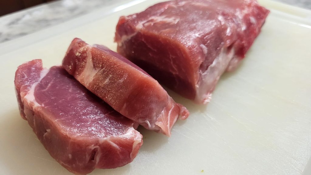 Take your tenderloin and slice it into pieces about 1.2 inches thick and salt