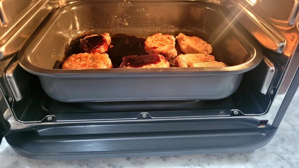 Add the balsamic glaze and put the tray back in the multicooker at temperature 3.