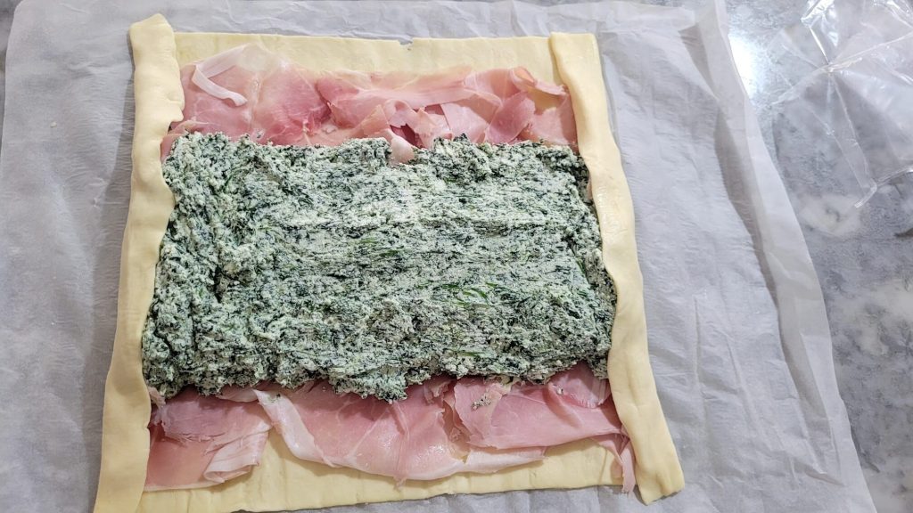 To ensure this dish turns out well, it’s essential to squeeze the spinach well to remove the vegetable water, or you can prepare them the day before, and after squeezing, store them in the fridge, leaving them in a colander overnight. My version, in addition to ricotta and spinach, also includes cooked ham and cheese slices, but you can replace them as you like with other cheeses and cold cuts.
