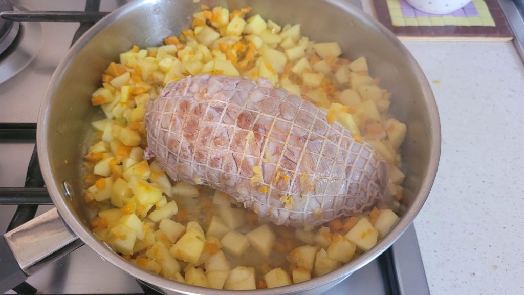 What characterizes this roast is precisely the sauce: it is obtained from cooking apples together with onion, carrot, and celery, enhancing and making it pleasantly enjoyable. It is a roast with autumnal notes, a version that will win over your guests.