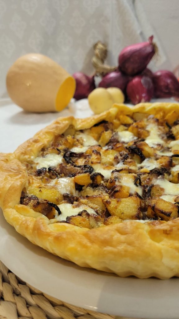 The Savory Pie with Pumpkin, Potatoes, and Tropea Onions is very simple to prepare and you can do it both in the Air Fryer and in the oven, same for the filling you will use to stuff the puff pastry. The slightly sweet contrast of the vegetables with the intense and bold cheeses is delicious; I hope you like it as much as my family and I did. Come discover how to prepare it!