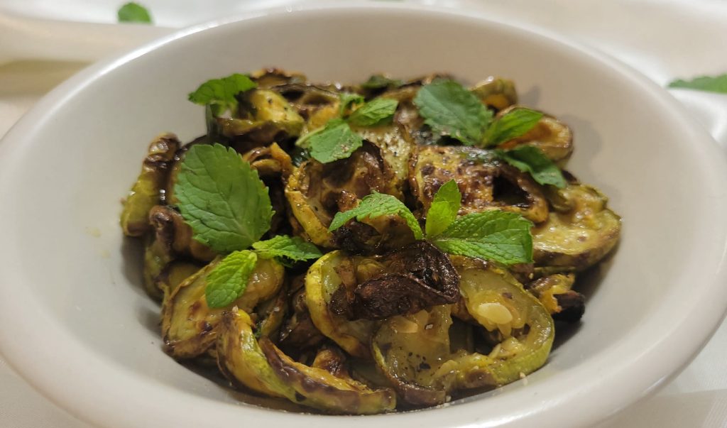 Add a few mint leaves, ground pepper if you like, and serve your Zucchini alla Scapece in the air fryer