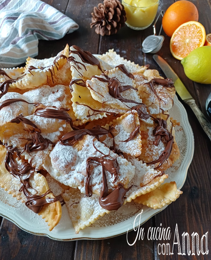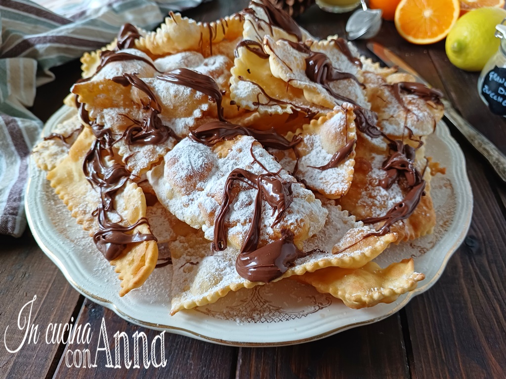 Chiacchiere with Nutella are traditional carnival sweets, very easy to make, crunchy and fragrant, very aromatic and extremely tasty, with all those bubbles they will conquer you on the first taste, this version is even more delicious because enriched with Nutella.
