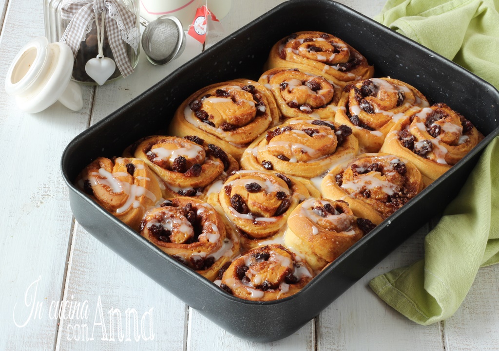 The Cinnamon rolls with raisins or Kanelbull are super soft cinnamon brioche typical of Sweden, widely popular in North America, and thanks to the Swedish furniture chain now everywhere 🙂 These brioche are immediately recognizable by their rounded shape with the filling that creates a swirl inside, large soft rolls, delicious and with an intoxicating aroma of cinnamon and butter, enriched with raisins making them even richer and more delicious.