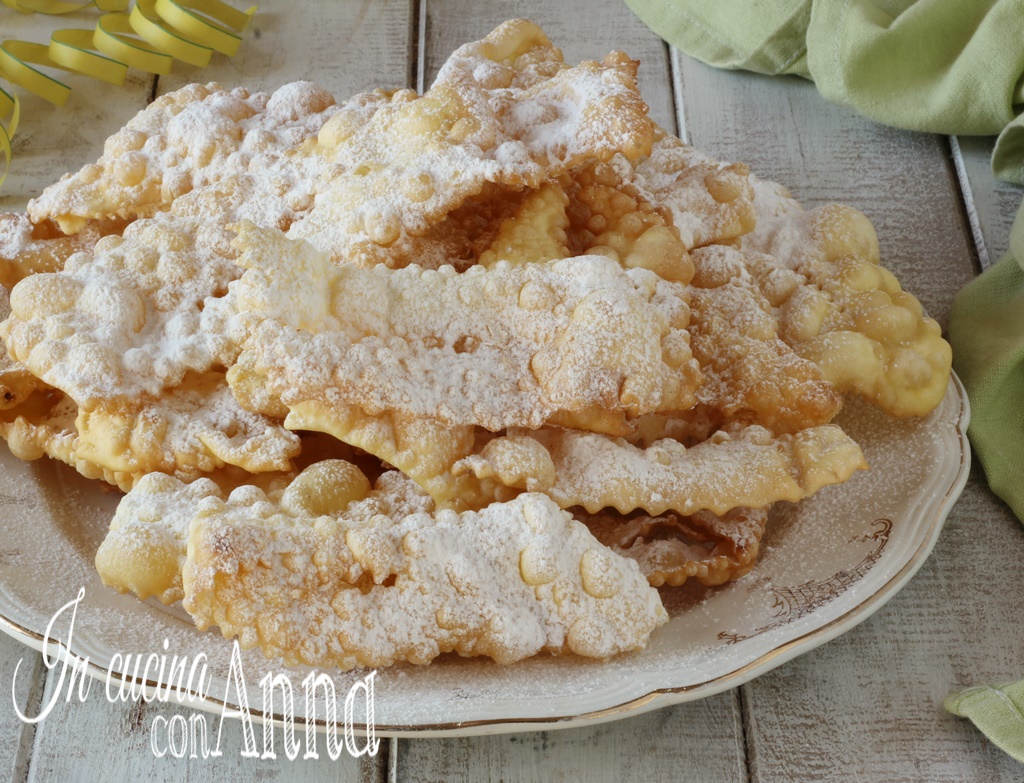 These dry and bubbly grandma’s chiacchiere are the recipe from my childhood, the one my mom always made 🙂 the best I’ve ever tasted, simple, fragrant, dry, crispy, and full of bubbles. A recipe lost over the years and then found in an old recipe book that fell behind a drawer 🙂 and here I am making them, maybe it’s because my mind goes back through the years, but they are incredibly delicious 😀 try them too, you’ll see you won’t abandon them anymore 😉