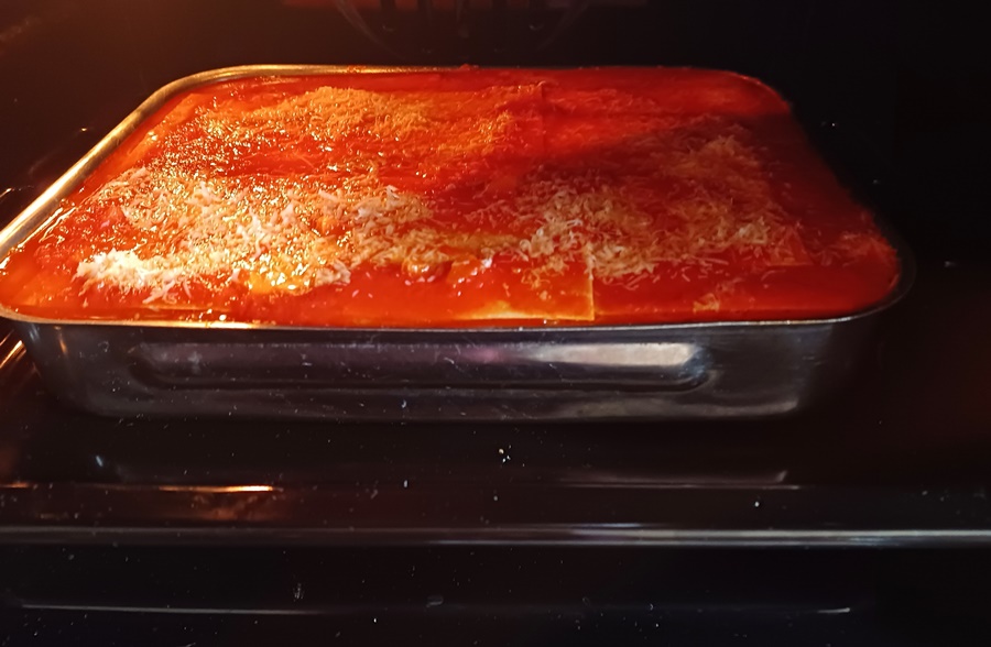 First, prepare the meat sauce; you can also do this the day before and store it in the fridge once it’s cold (I make quite a bit to have a well-seasoned lasagna that isn’t dry).