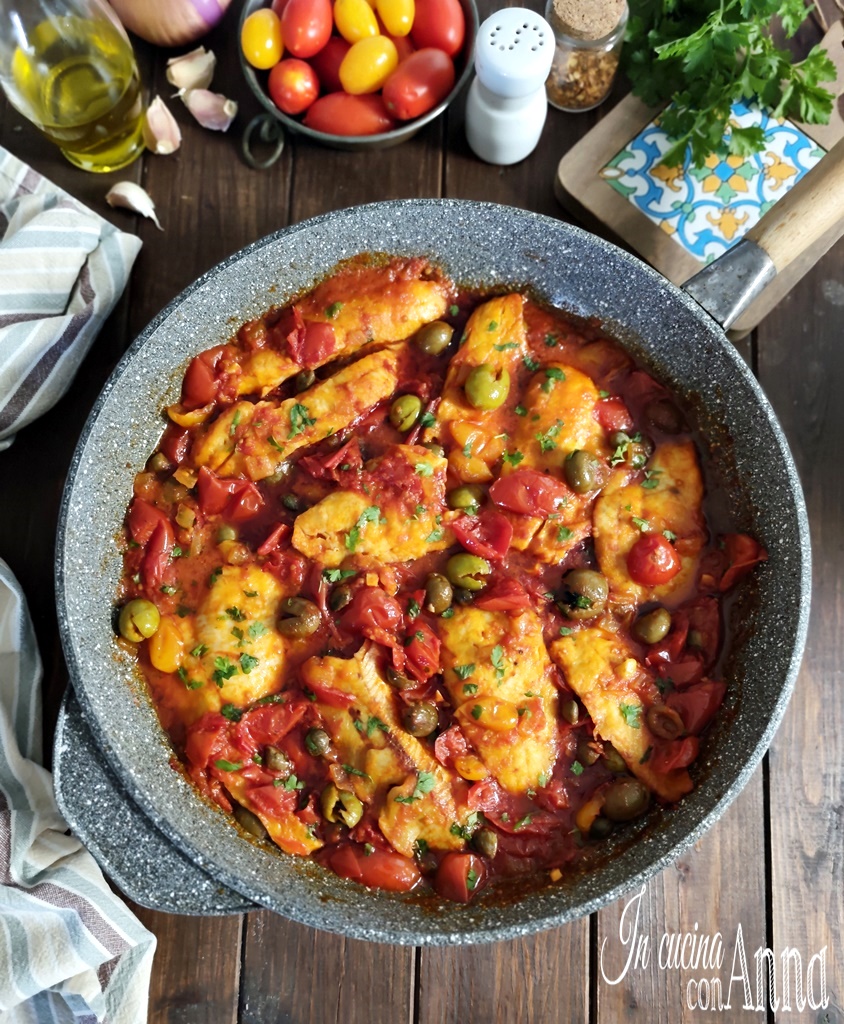 The Mediterranean cod is a very simple dish to prepare, delicious and very flavorful, with its succulent sauce flavored with olives and capers will win everyone over at the first taste.