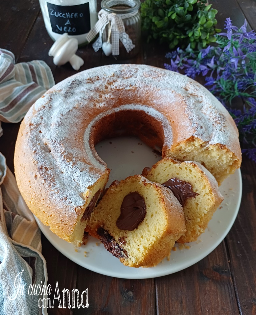 Once baked, remove from the oven and let cool, then place the bundt cake on a platter and sprinkle with powdered sugar.