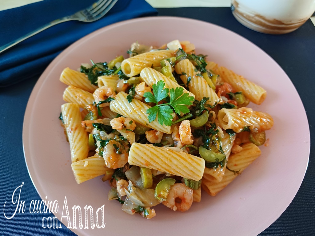 Pasta with zucchini, shrimp, and arugula is a very simple and quick first course to prepare, a harmony of flavors that blend perfectly together, creating a very tasty dish. A perfect dish for any occasion and for the whole family, try it, it will win you over at the first taste 🙂