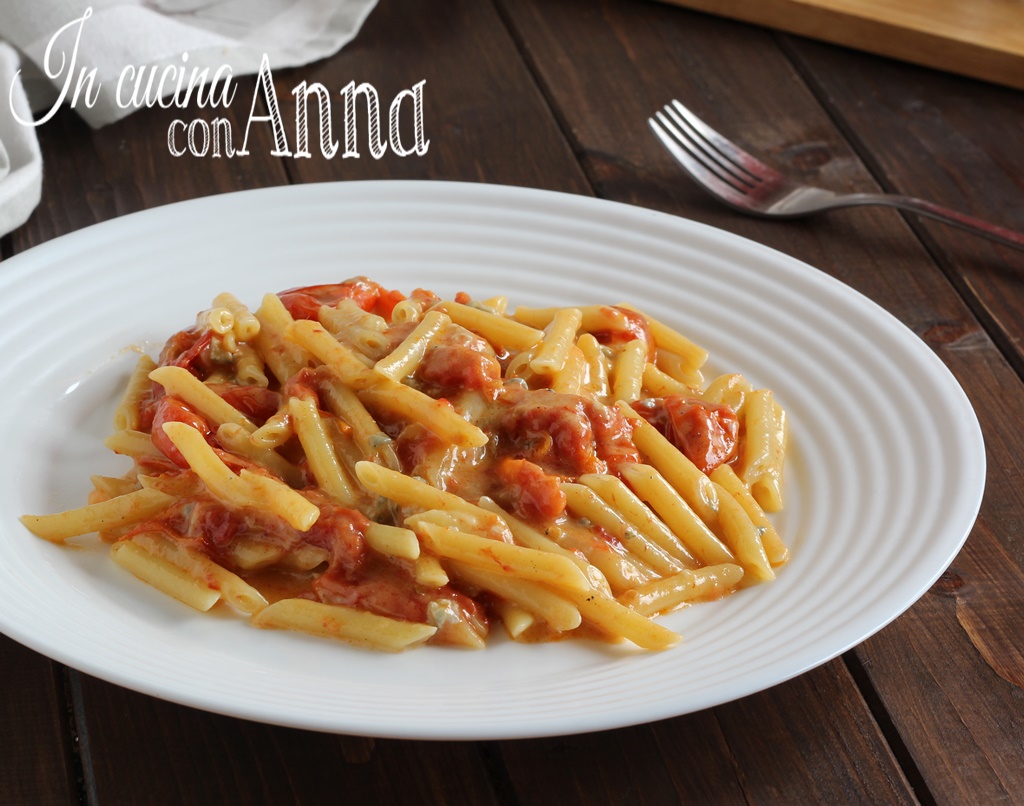 Penne with tomato and gorgonzola is a very simple first course to prepare, rich, creamy, tasty and so flavorful, a dish that I recommend you try, you’ll see it will win you over at the first taste and it is perfect even if you have guests.