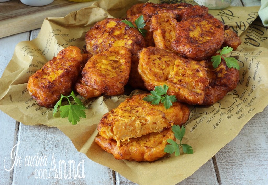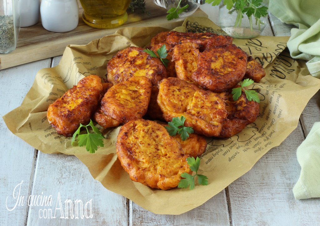 • Cook the potato and pumpkin fritters until they are golden on both sides, let them drain slightly on kitchen paper.