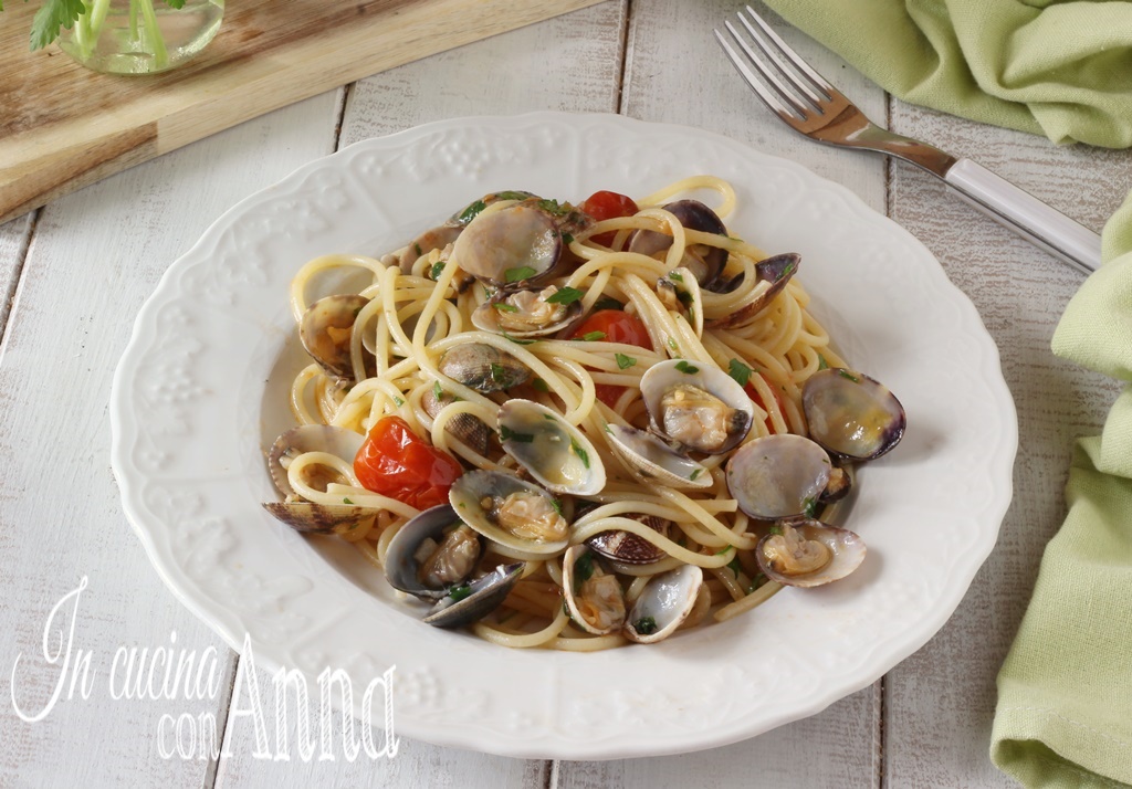 After the recipe of spaghetti with clams in white sauce, today I present you spaghetti with clams and cherry tomatoes, a very simple dish to prepare, quick and with unique goodness, a perfect dish on any occasion, whether it is a summer spaghetti, Christmas Eve dinner, New Year’s Eve, a Sunday lunch, an anniversary, a romantic dinner and so on… it is really perfect for any occasion and for everyone 🙂 one of those dishes that always conquers everyone at the first taste.