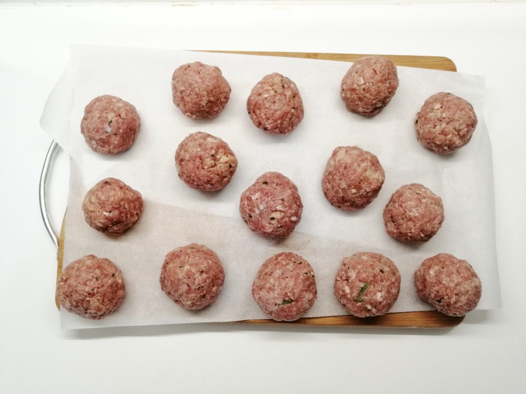 • With slightly damp hands, form many small bombettes the size of a walnut and place them on parchment paper as you go.