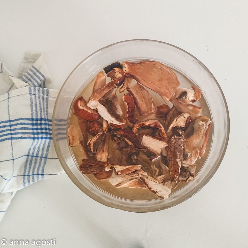 • Soak the dried porcini mushrooms in plenty of hot water for 30 minutes.