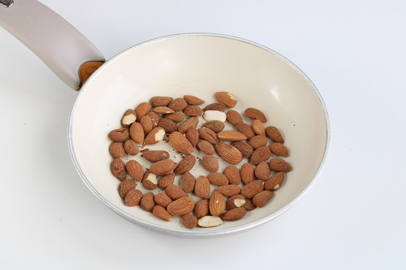 In a non-stick pan, toast the almonds over medium heat for a few minutes.