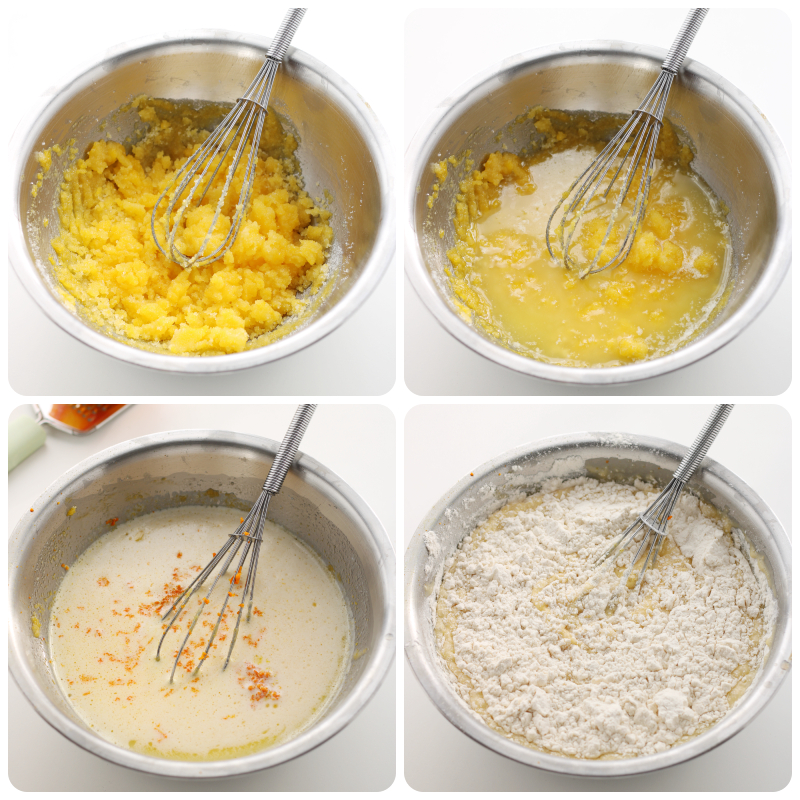 Mix well with a whisk, then add the egg whites beaten to stiff peaks and combine all ingredients until you get a smooth and homogeneous batter.