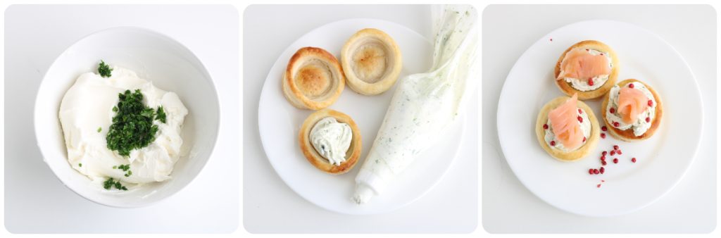 Vol au vent with salmon and mascarpone, the quick and easy appetizer for the Christmas holidays, a recipe for stuffed vol au vent that, together with salmon crostini, are ideal for Christmas Eve, for Christmas lunch, but also for New Year’s Eve dinner. First, see how to make vol au vent at home, then once made, all you have to do is fill them with mascarpone, parsley, and smoked salmon. Of course, you can always decide to speed up the recipe by buying them ready-made or frozen.